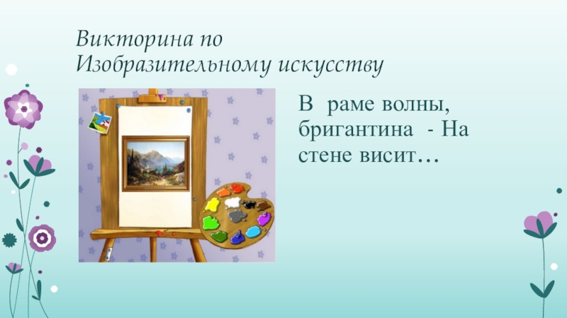 Викторина по  Изобразительному искусствуВ  раме волны, бригантина - На стене висит…