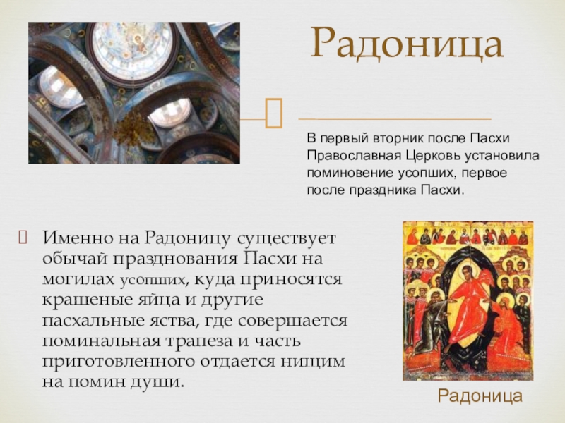 В первый вторник после Пасхи Православная Церковь установила поминовение усопших, первое после праздника Пасхи.