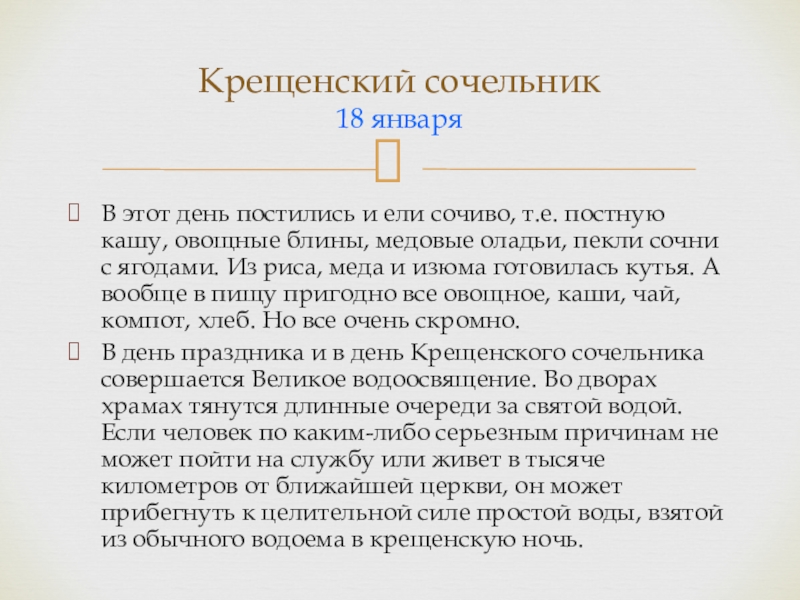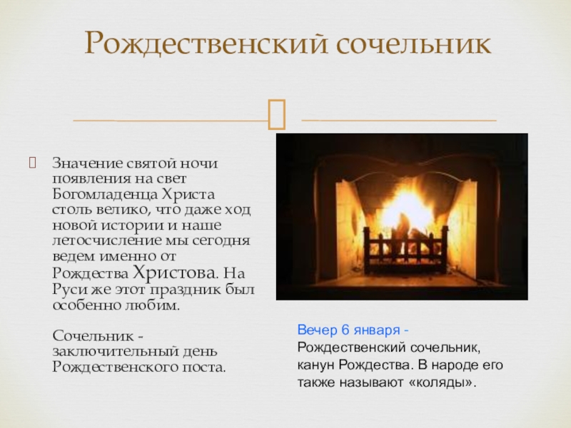 Вечер 6 января - Рождественский сочельник, канун Рождества. В народе его также называют «коляды».