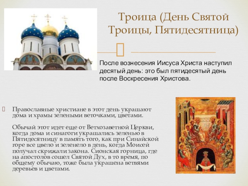 После вознесения Иисуса Христа наступил десятый день: это был пятидесятый день после Воскресения Христова.