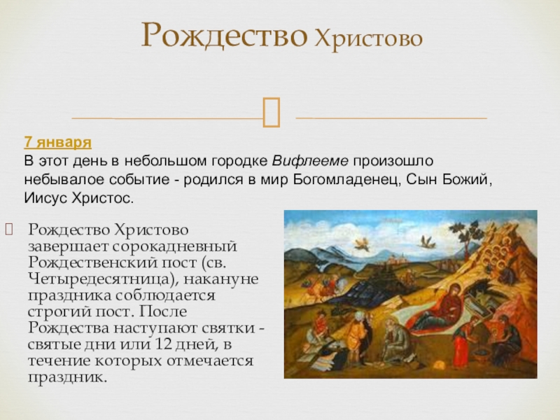 В этот день в небольшом городке Вифлееме произошло небывалое событие - родился в мир Богомладенец, Сын Божий, Иисус Христос.