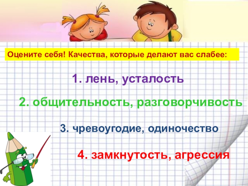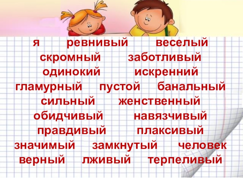 Выпишите на свой лист те качества, которые присущи вам лично.