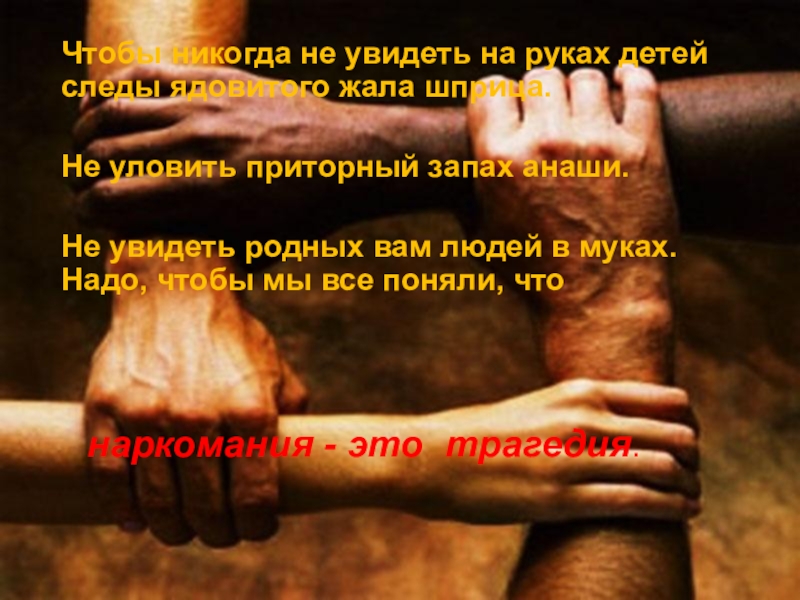 Чтобы никогда не увидеть на руках детей следы ядовитого жала шприца.