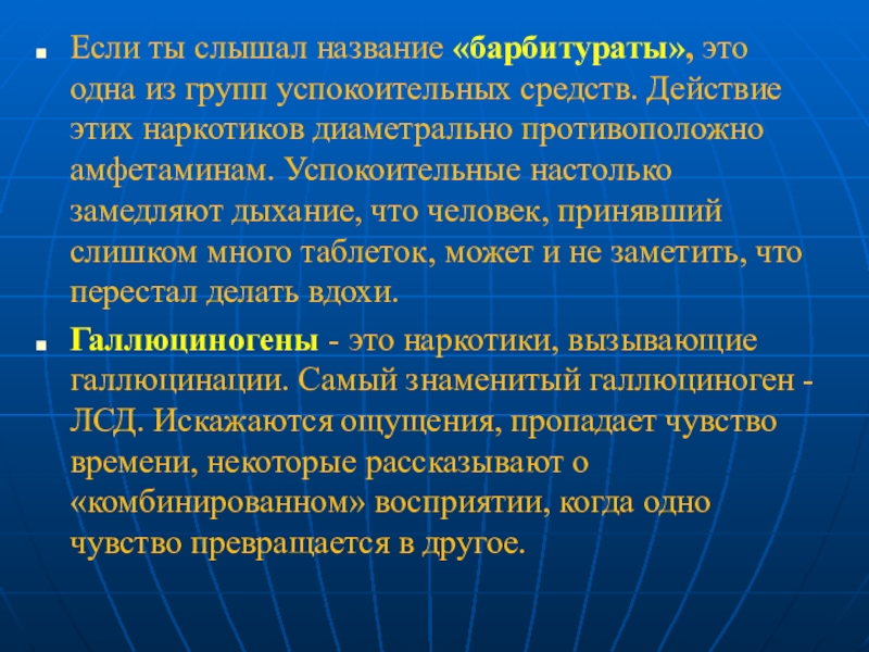 Слайд 9Если ты слышал название «барбитураты», это одна из групп успокоительных средств.