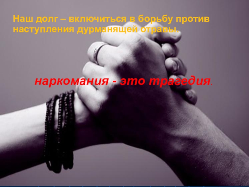 Слайд 18Наш долг – включиться в борьбу против наступления дурманящей отравы.