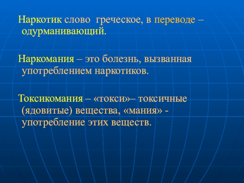 Слайд 3 Наркотик слово греческое, в переводе – одурманивающий.