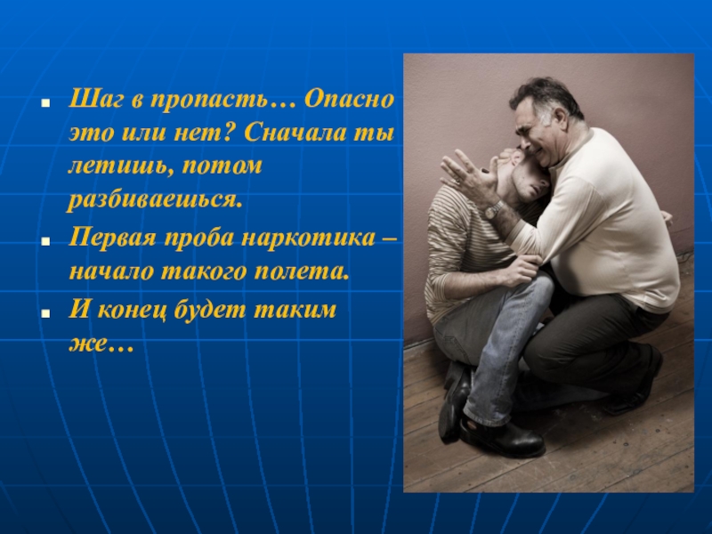 Слайд 4Шаг в пропасть… Опасно это или нет? Сначала ты летишь, потом