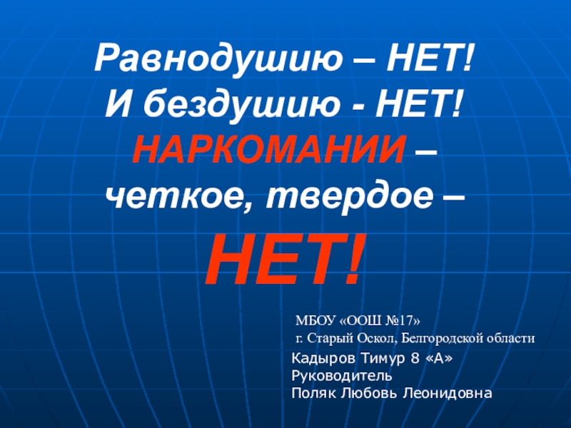 Слайд 17Искоренить наркоманию – неотложная и гуманнейшая задача.