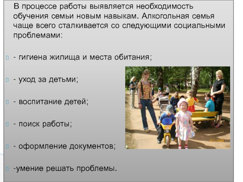 Слайд 11 В процессе работы выявляется необходимость обучения семьи новым навыкам.