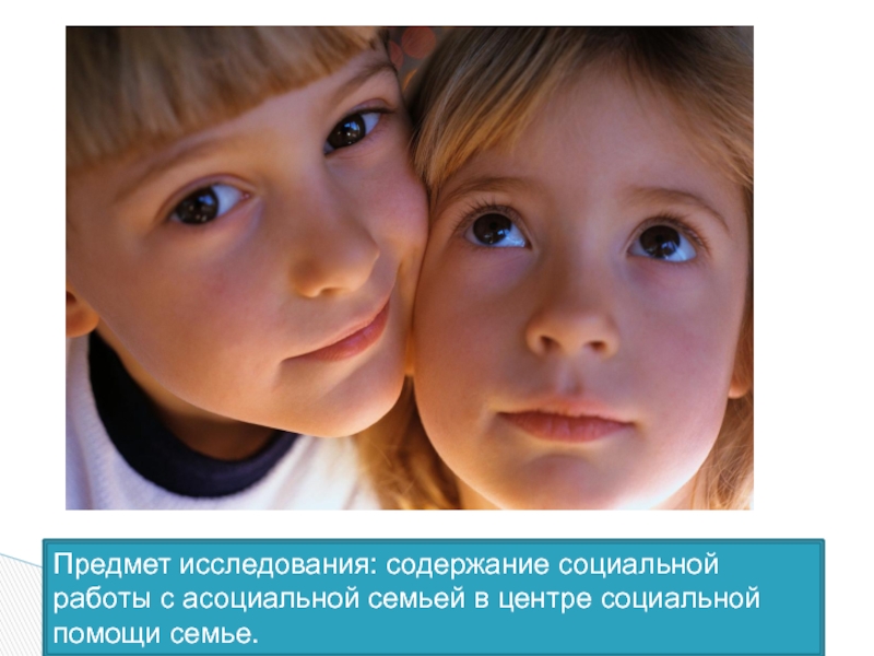 Слайд 5Предмет исследования: содержание социальной работы с асоциальной семьей в центре социальной