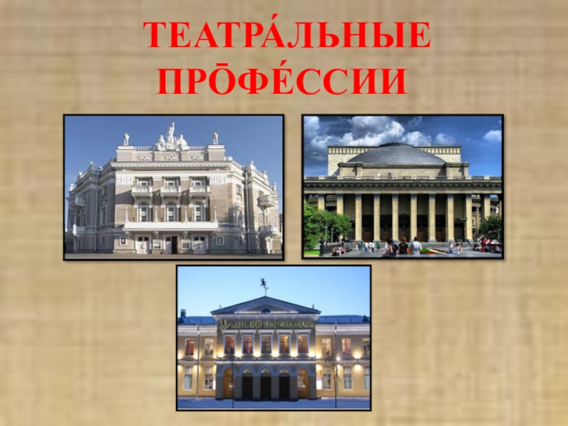 Слайд 1 ТЕАТРА́ЛЬНЫЕ ПРŌФЕ́ССИИ