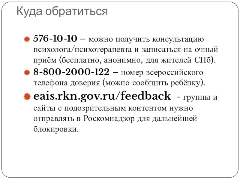 576-10-10 – можно получить консультацию психолога/психотерапевта и записаться на очный