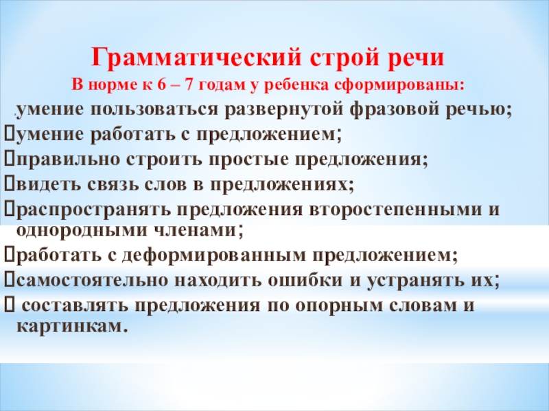 Слайд 9Грамматический строй речи