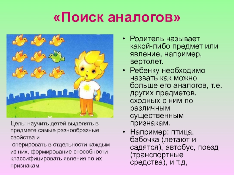 оперировать в отдельности каждым из них, формирование способности классифицировать явления по их признакам.