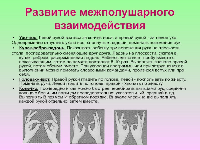 Слайд 14Развитие межполушарного взаимодействия