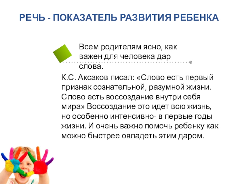 РЕЧЬ - ПОКАЗАТЕЛЬ РАЗВИТИЯ РЕБЕНКА