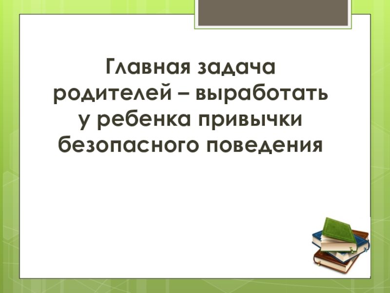 Слайд 9Главная задача родителей – выработать у ребенка привычки безопасного поведения