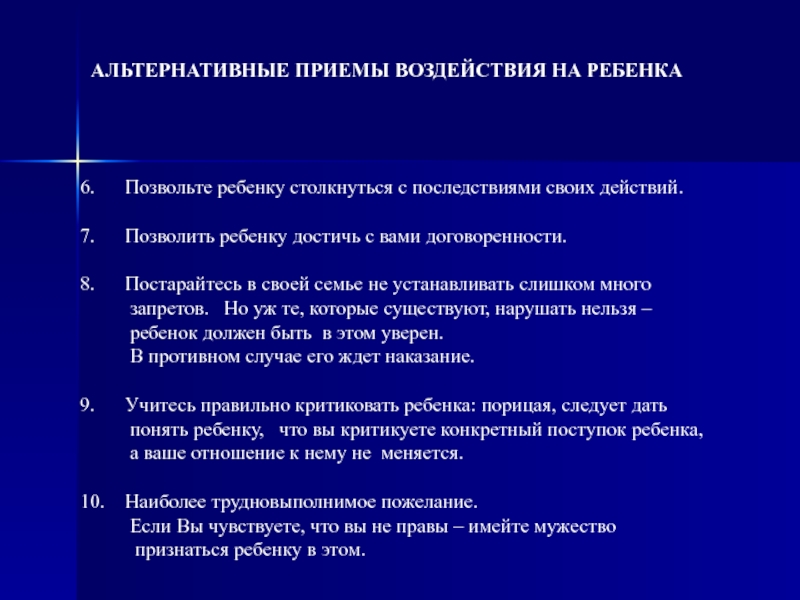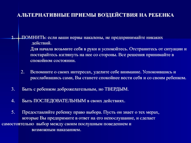 АЛЬТЕРНАТИВНЫЕ ПРИЕМЫ ВОЗДЕЙСТВИЯ НА РЕБЕНКА