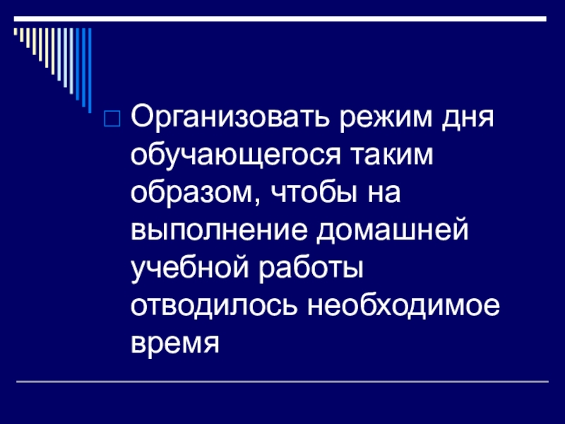 Организовать режим дня обучающегося таким образом, чтобы на выполнение домашней учебной