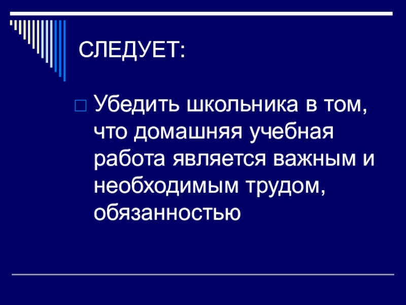 Убедить школьника в том, что домашняя учебная работа является важным и