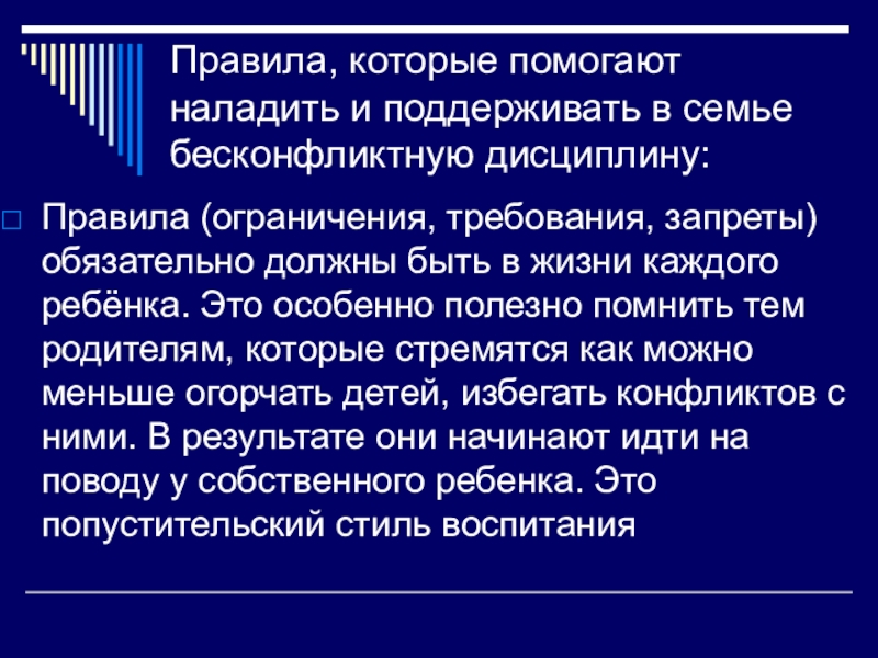 Слайд 14Правила, которые помогают наладить и поддерживать в семье бесконфликтную дисциплину: