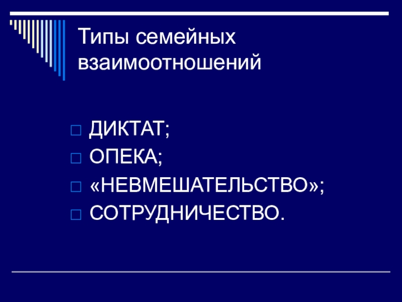 Слайд 13Типы семейных взаимоотношений