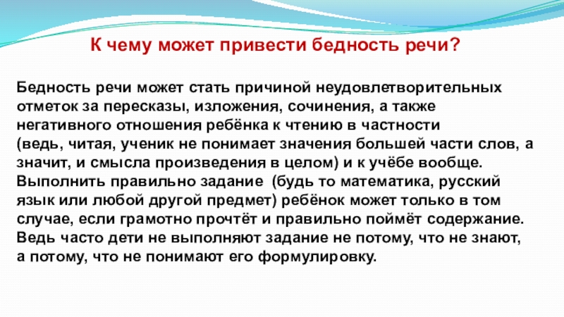 От уровня речевого развития зависит и общее интеллектуальное развитие