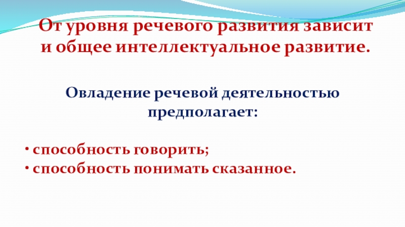 Слайд 5От уровня речевого развития зависит и общее интеллектуальное развитие.