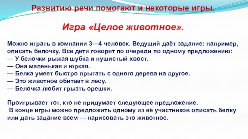 В конце игры можно предложить одному из её участников описать белку или дать задание всем — нарисовать это животное.