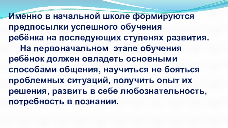 Слайд 6Именно в начальной школе формируются предпосылки успешного обучения