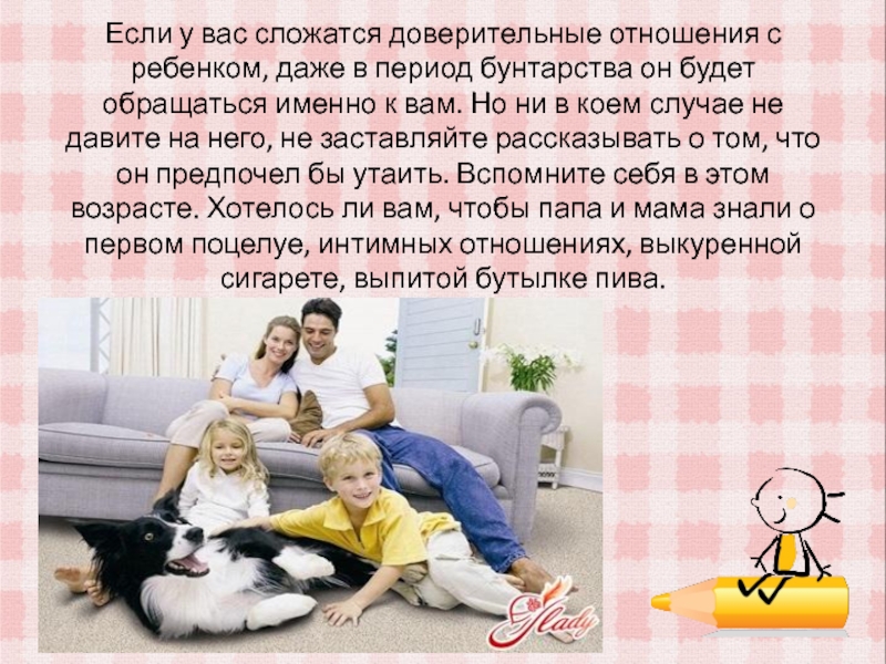 Если у вас сложатся доверительные отношения с ребенком, даже в период