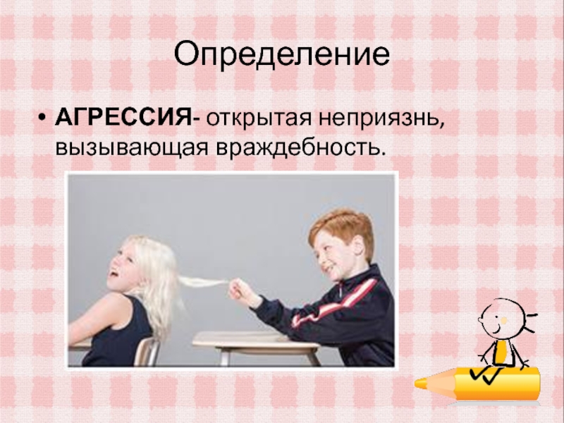 АГРЕССИЯ- открытая неприязнь, вызывающая враждебность.