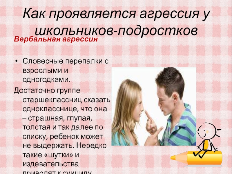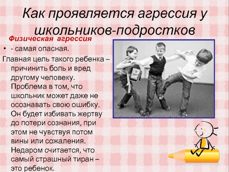 Слайд 13Как проявляется агрессия у школьников-подростков