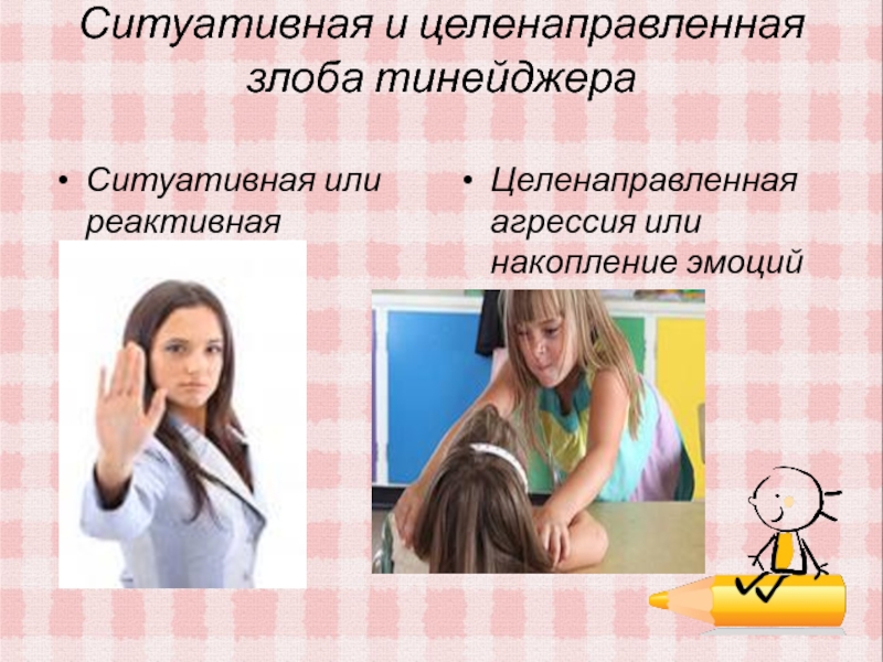 Слайд 15Ситуативная и целенаправленная злоба тинейджера
