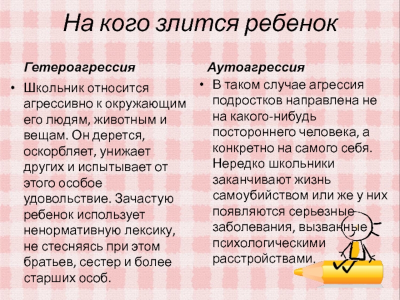 и вещам. Он дерется, оскорбляет, унижает других и испытывает от этого особое удовольствие. Зачастую ребенок использует ненормативную лексику, не стесняясь при этом братьев, сестер и более старших особ.