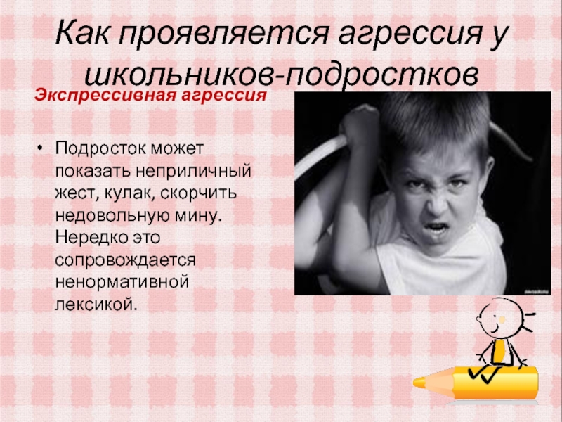 Слайд 11Как проявляется агрессия у школьников-подростков