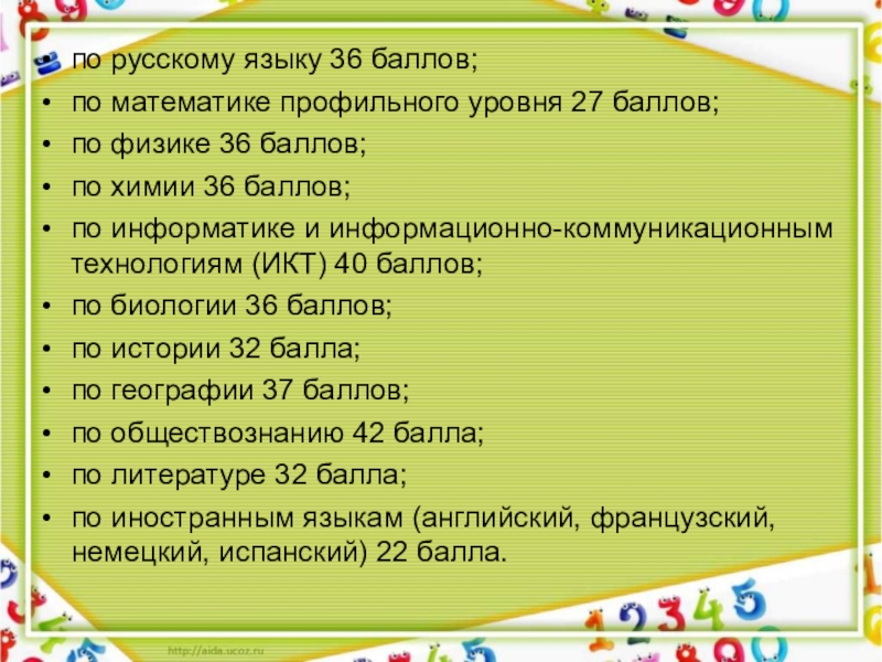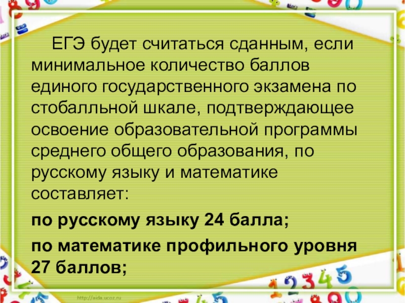 Слайд 14 ЕГЭ будет считаться сданным, если минимальное количество баллов единого государственного экзамена