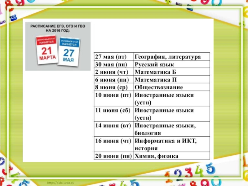4.http://informatio.ru/news/education/middledu/raspisanie_ege_i_gia_2016_sroki_sdachi_gosekzamenov/#ege