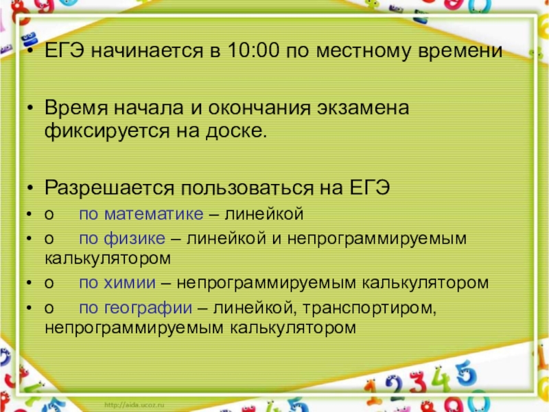 Слайд 23ЕГЭ начинается в 10:00 по местному времени