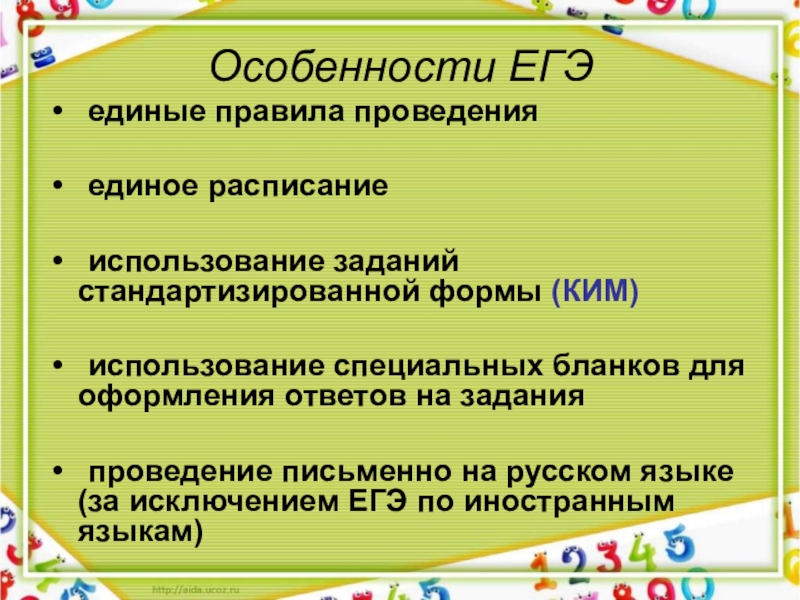 проведение письменно на русском языке (за исключением ЕГЭ по иностранным языкам)