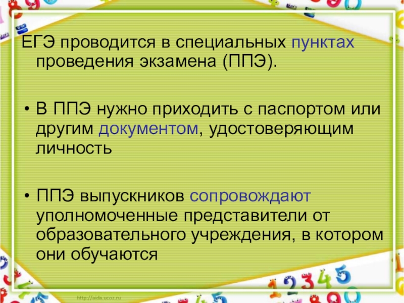 Слайд 22ЕГЭ проводится в специальных пунктах проведения экзамена (ППЭ).