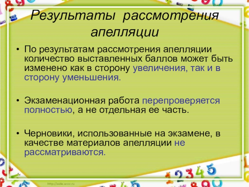 По результатам рассмотрения апелляции количество выставленных баллов может быть