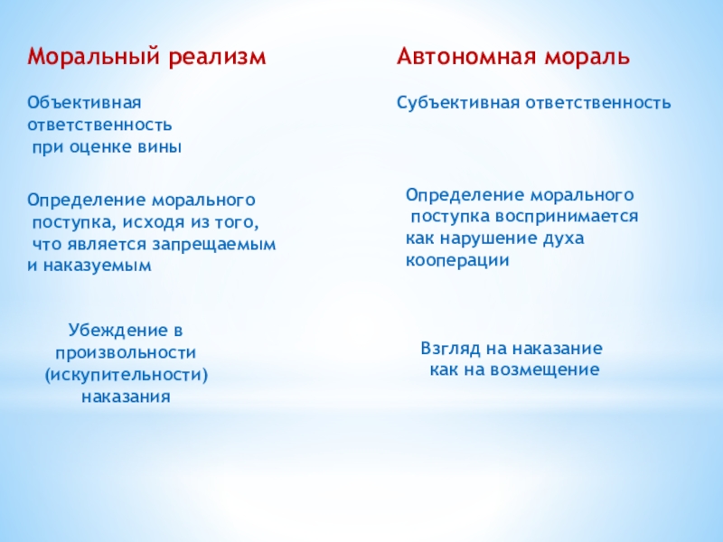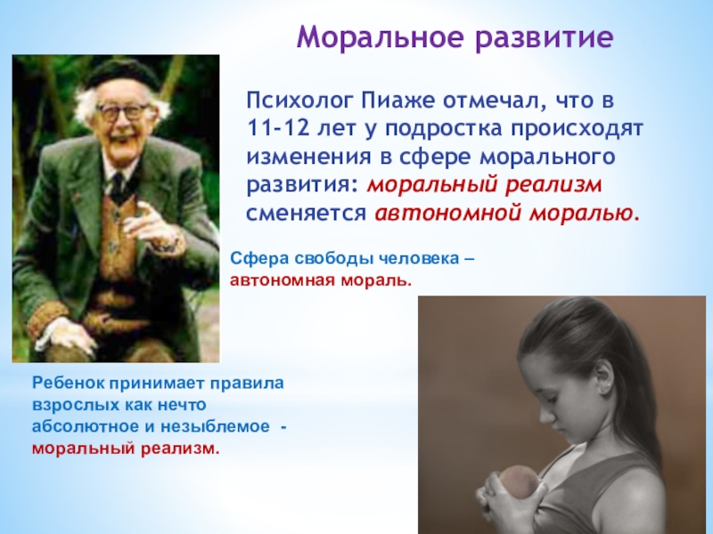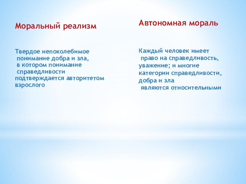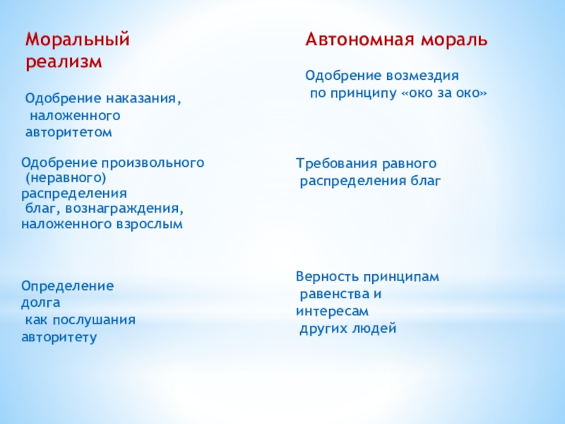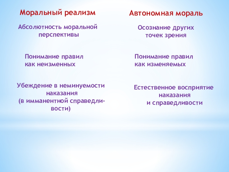 Ребенок принимает правила взрослых как нечто абсолютное и незыблемое - моральный реализм.