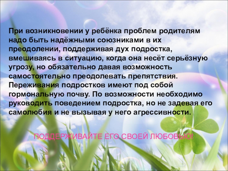 ПОДДЕРЖИВАЙТЕ ЕГО СВОЕЙ ЛЮБОВЬЮ!