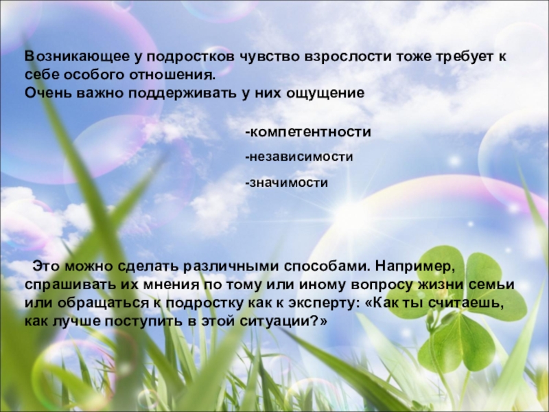 Это можно сделать различными способами. Например, спрашивать их мнения по тому или иному вопросу жизни семьи или обращаться к подростку как к эксперту: «Как ты считаешь, как лучше поступить в этой ситуации?»