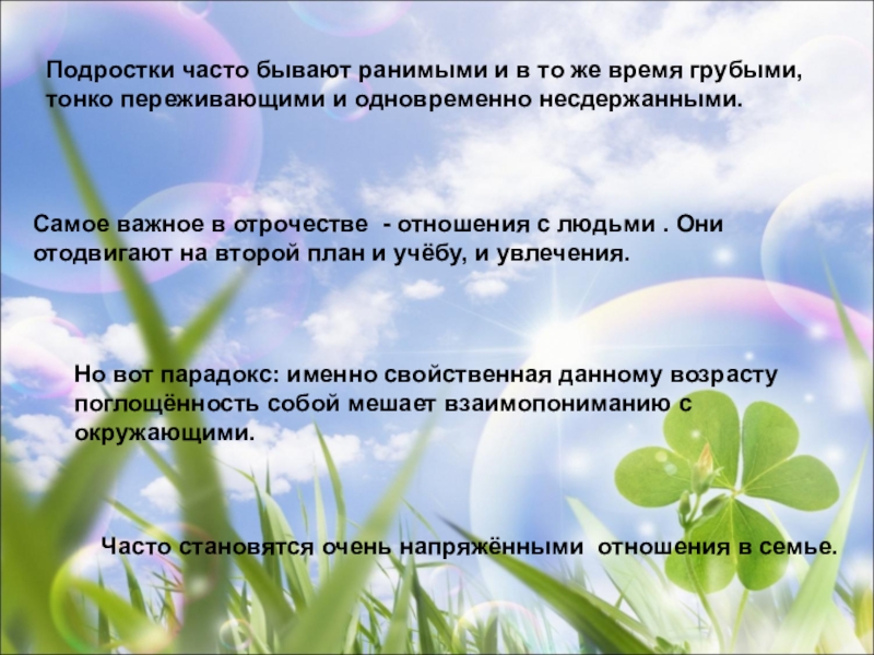 Но вот парадокс: именно свойственная данному возрасту поглощённость собой мешает взаимопониманию с окружающими.