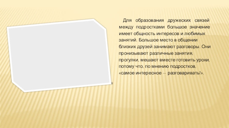 Слайд 29Для образования дружеских связей между подростками большое значение имеет общность интересов