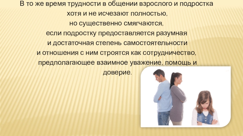Слайд 22В то же время трудности в общении взрослого и подростка