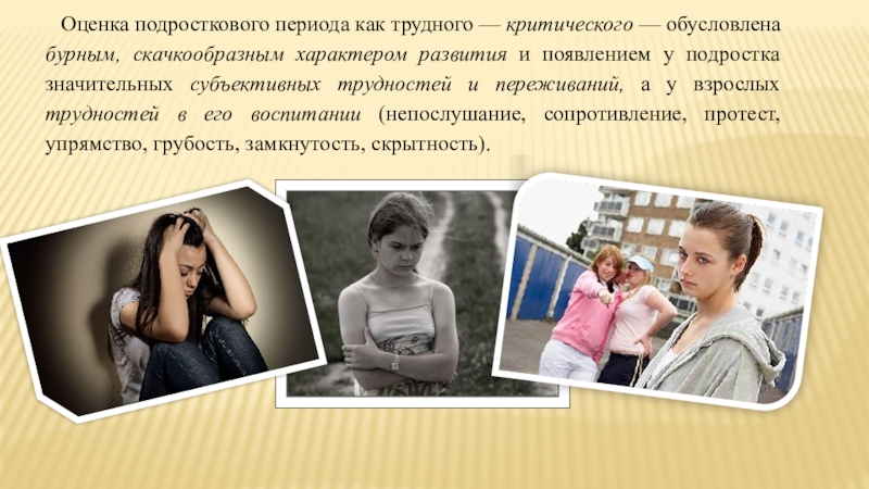 Слайд 5Оценка подросткового периода как трудного — критического — обусловлена бурным, скачкообразным
