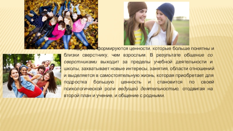 Слайд 23У подростка формируются ценности, которые больше понятны и близки сверстнику, чем